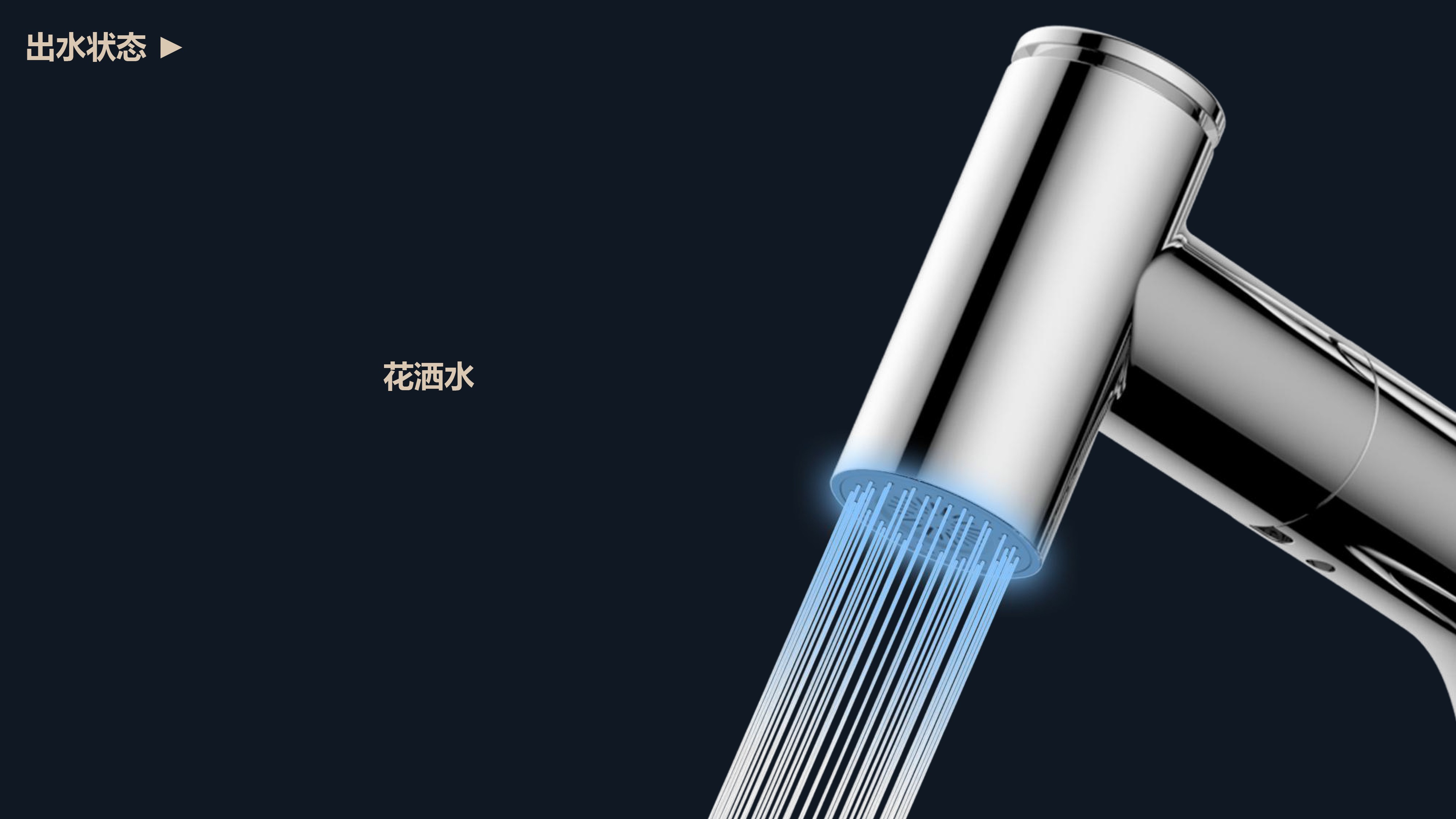 360°全方位抽拉清洗;微光龍頭,深夜使用不開大燈,不刺眼;日常洗頭利器,抽拉出水輕松洗;按壓切換兩功能水花;三種顏色LED燈光顯示水溫;重力錘復位設計,順暢伸縮,精準回位;無需工具,一推一擰10秒快裝
