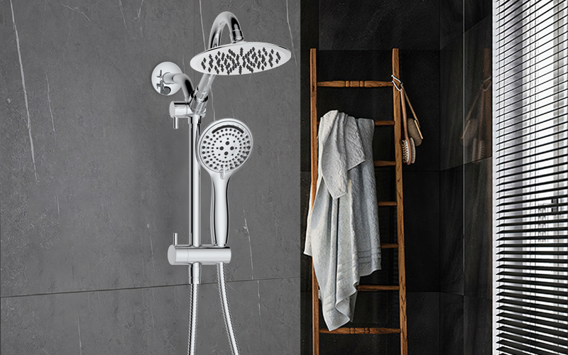 上出水彎管套裝;頂噴內(nèi)置球頭,可實現(xiàn)多角度旋轉(zhuǎn)調(diào)整;把手切換頂噴出水、花灑出水;轉(zhuǎn)動把手調(diào)節(jié)滑座高低