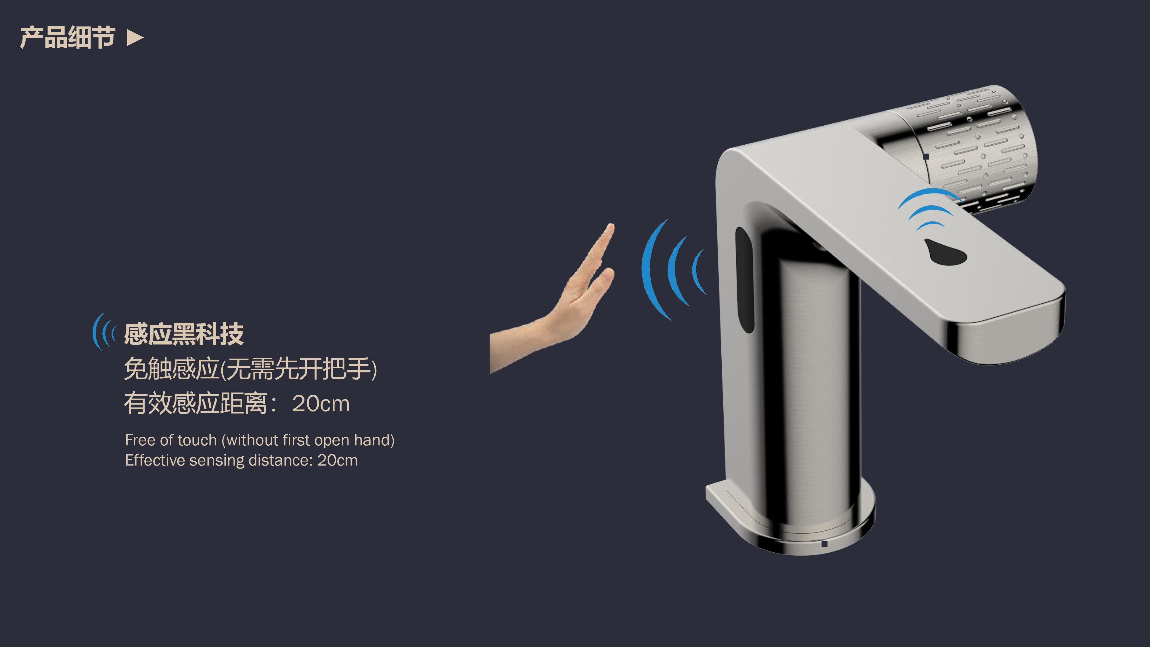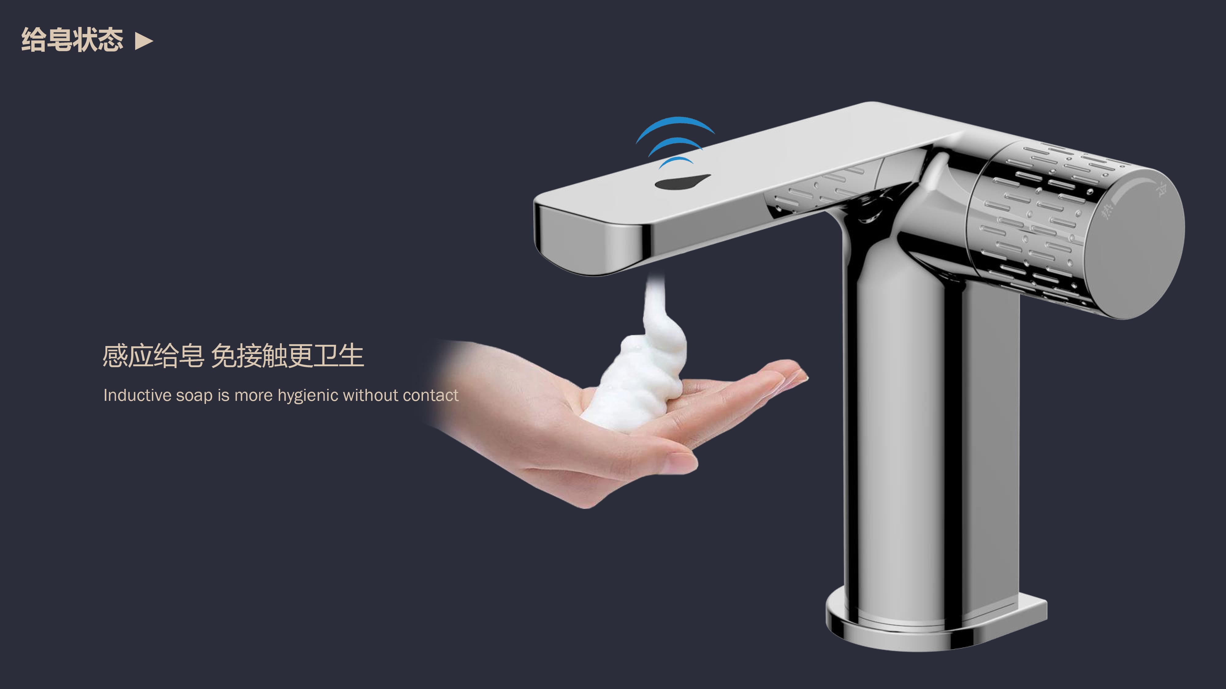 0接觸更健康,感應給皂雙控龍頭;有效感應距離20cm;智能芯片恒溫專利技術(shù);氣泡水觸感細膩不飛濺