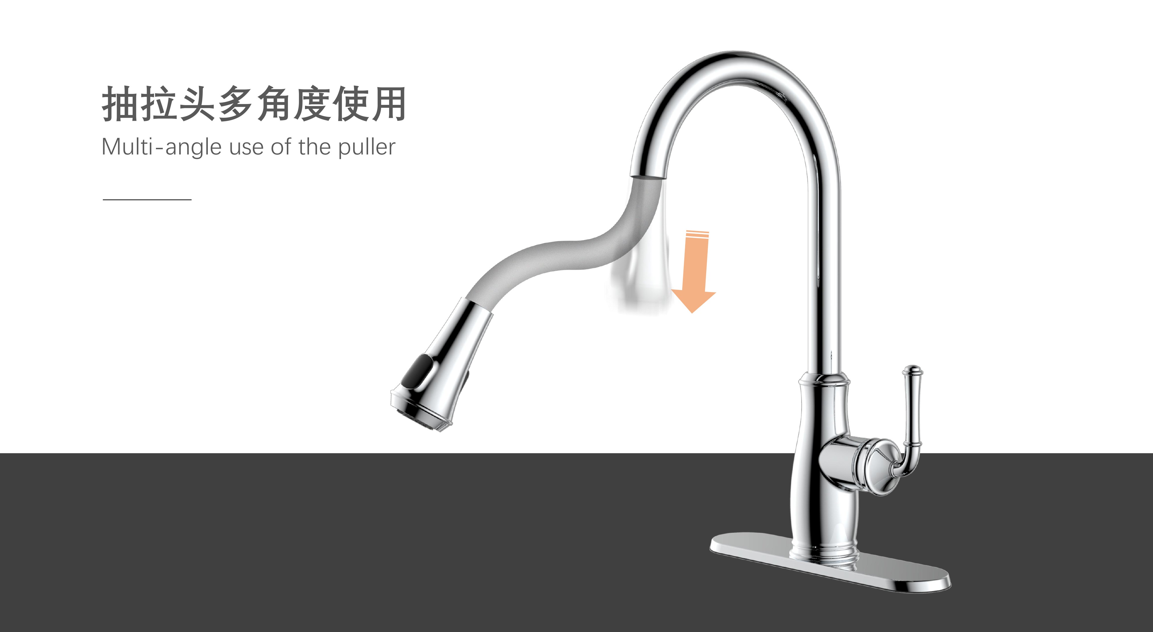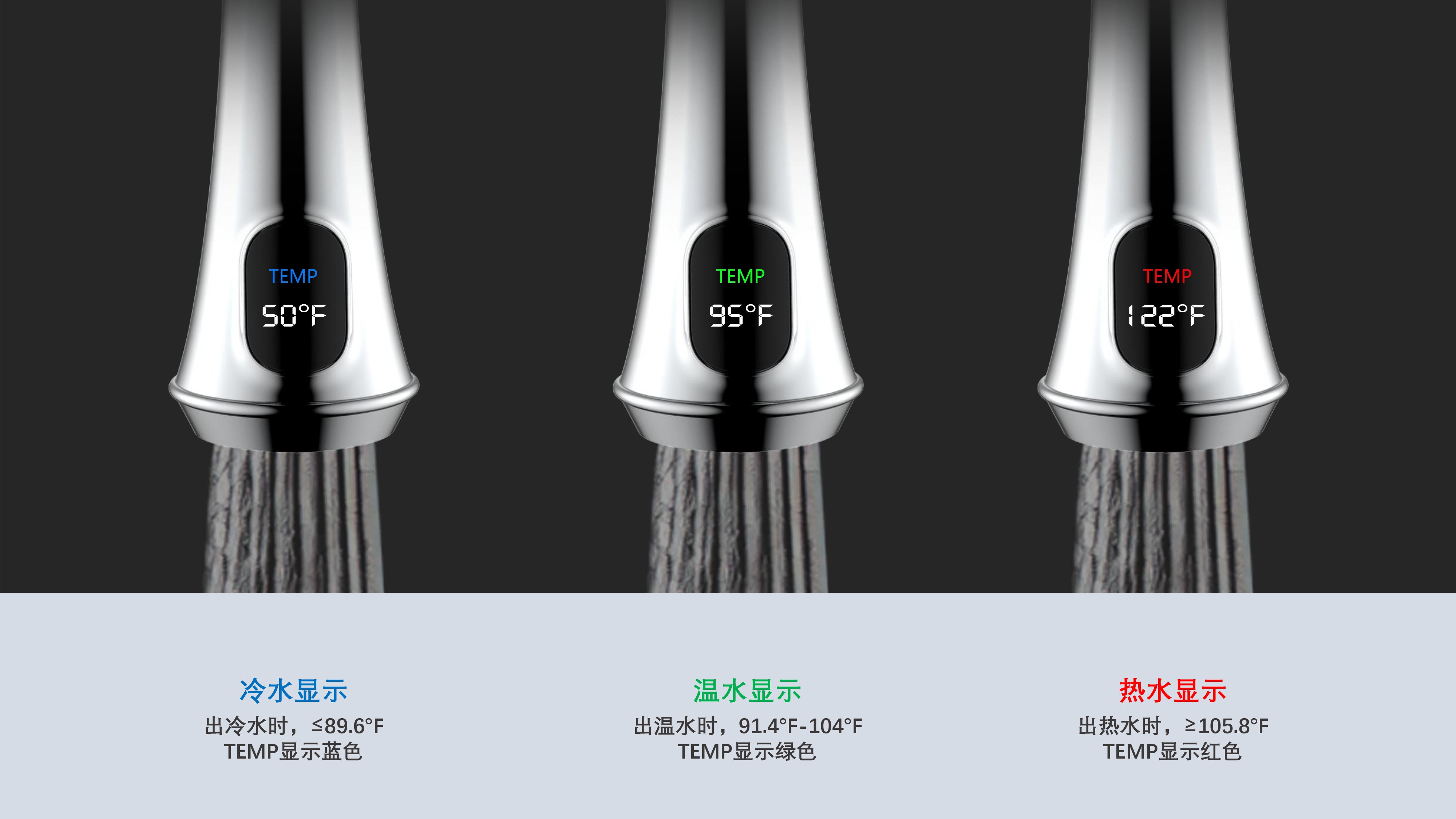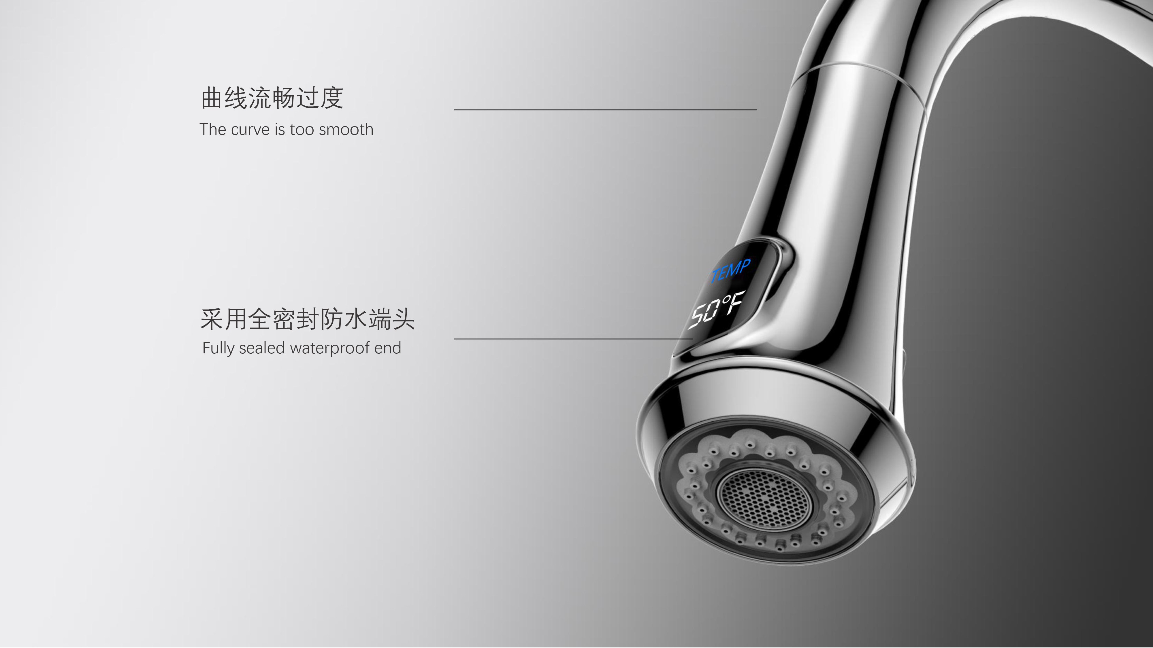 古典廚房龍頭;抽拉頭隨意抽拉多角度使用;采用全密封防水端頭;水力發(fā)電技術,智能芯片溫度數顯-冷水TEMP顯示藍色、溫水TEMP顯示綠色、熱水TEMP顯示紅色