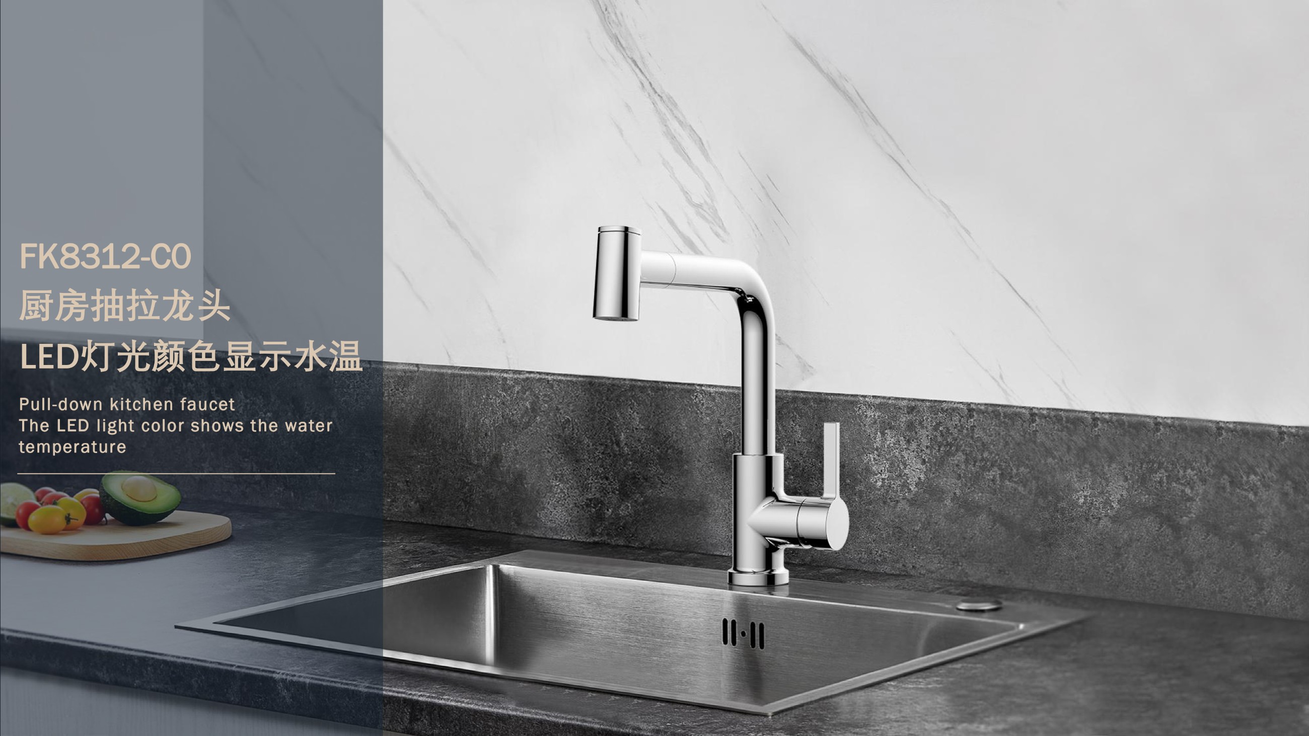 FK8312-C0 感溫LED廚房抽拉龍頭