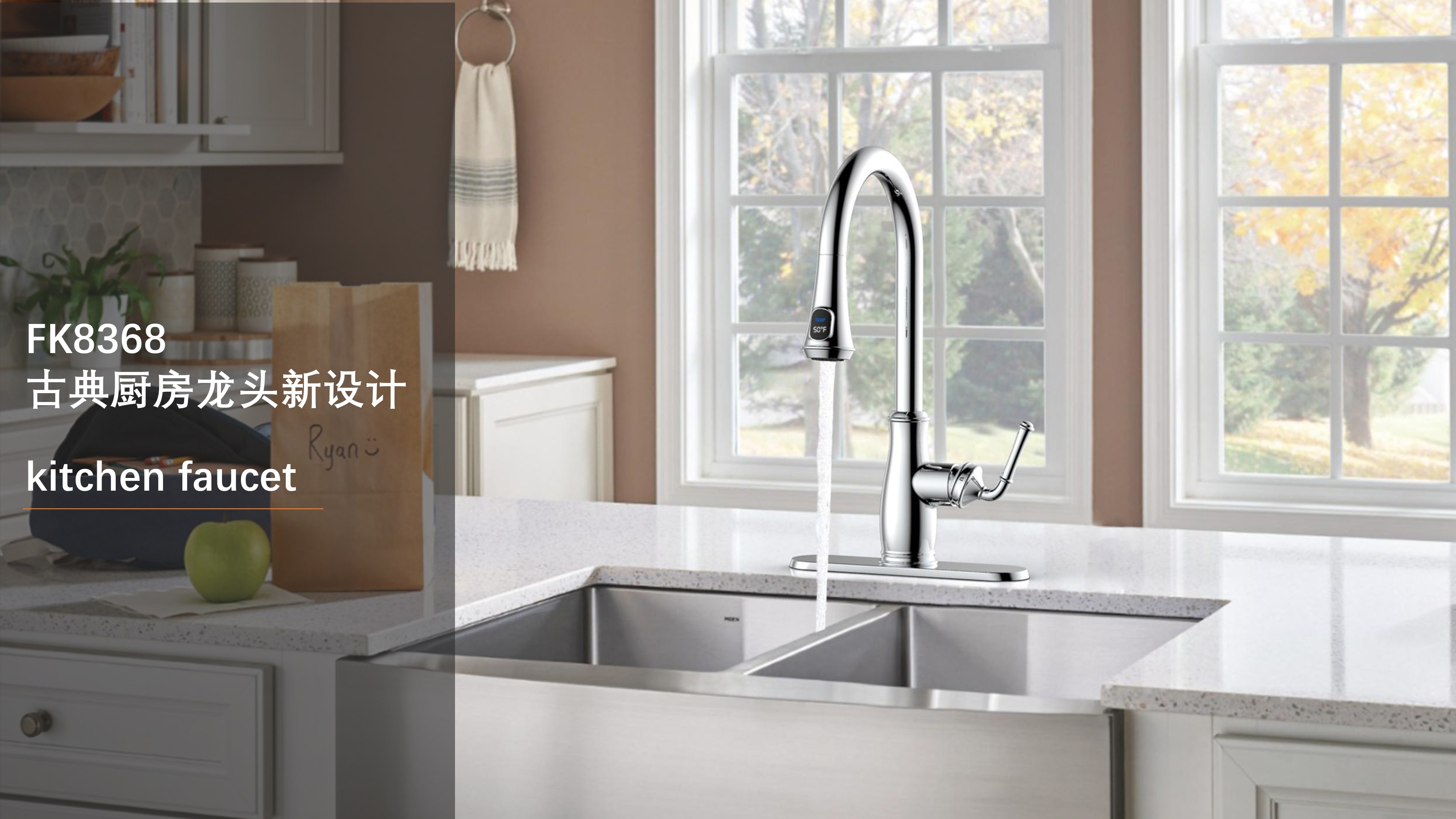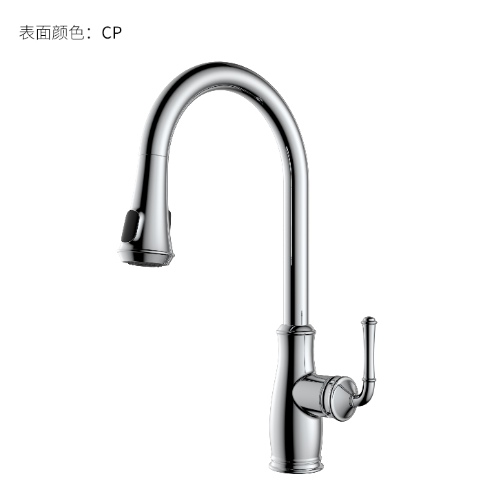 古典廚房龍頭;抽拉頭隨意抽拉多角度使用;采用全密封防水端頭;水力發(fā)電技術,智能芯片溫度數顯-冷水TEMP顯示藍色、溫水TEMP顯示綠色、熱水TEMP顯示紅色